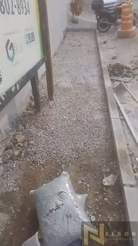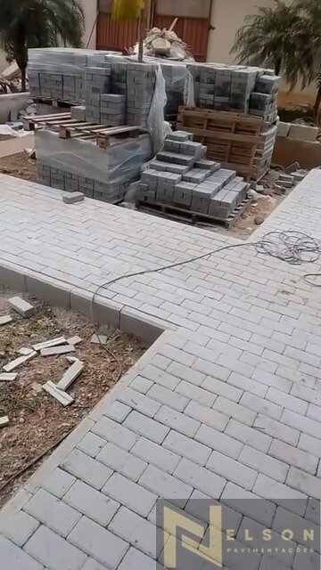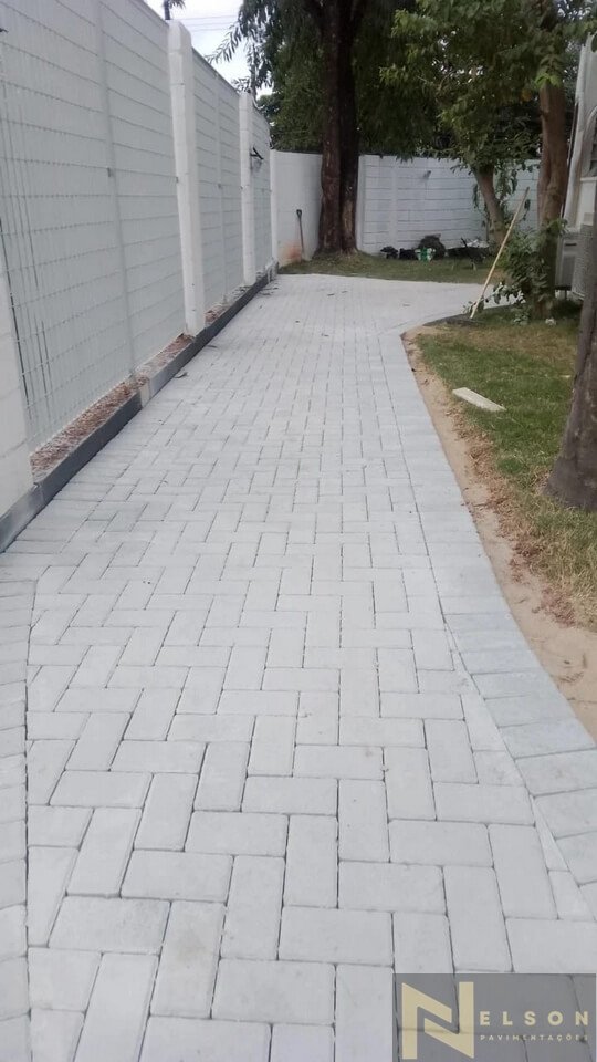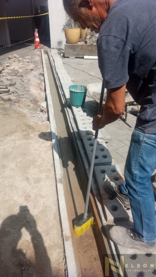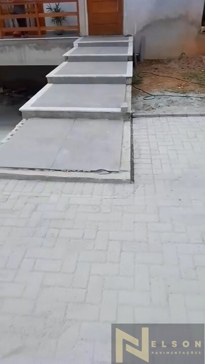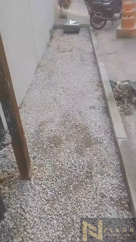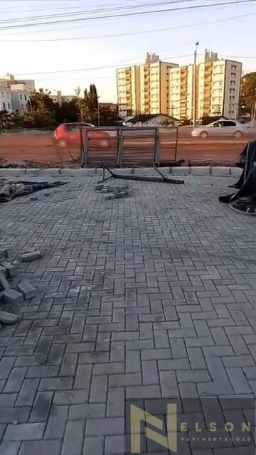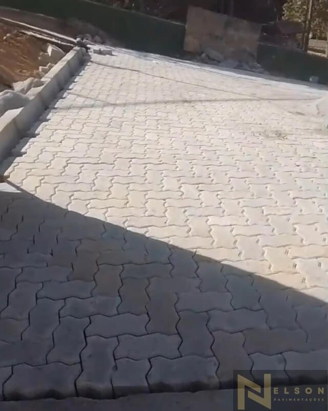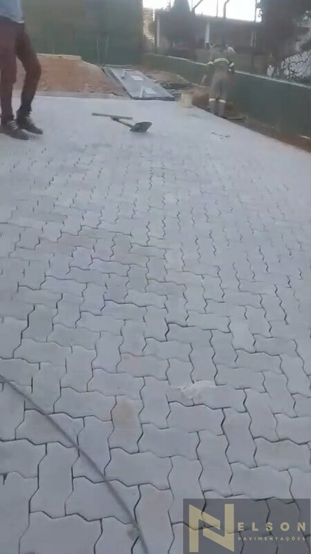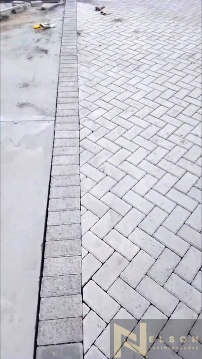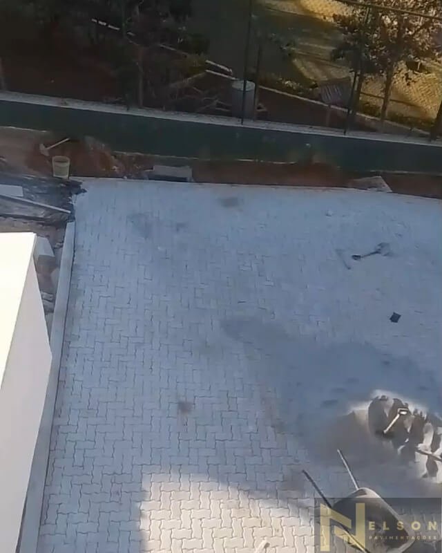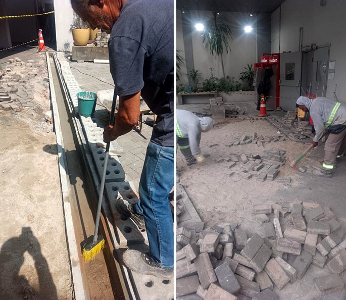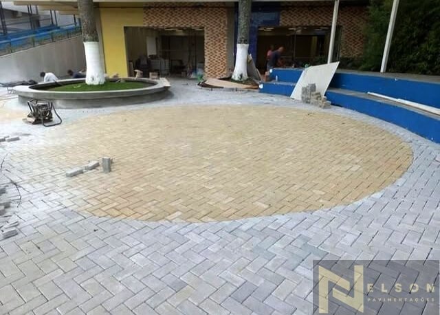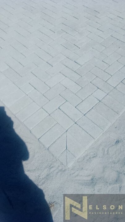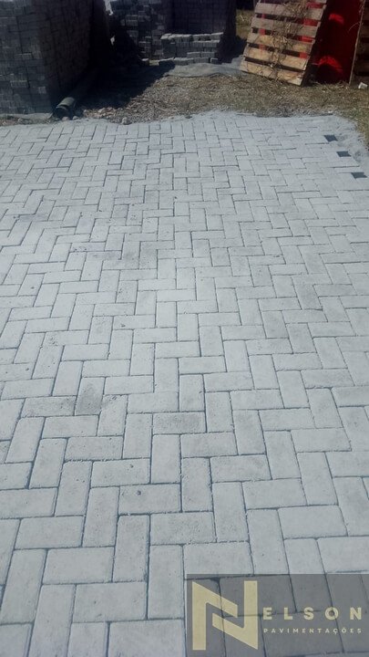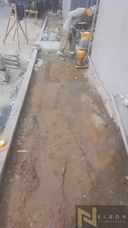 Nivelamento, assentamento do piso retangular, arremate, rejunte e compactação.