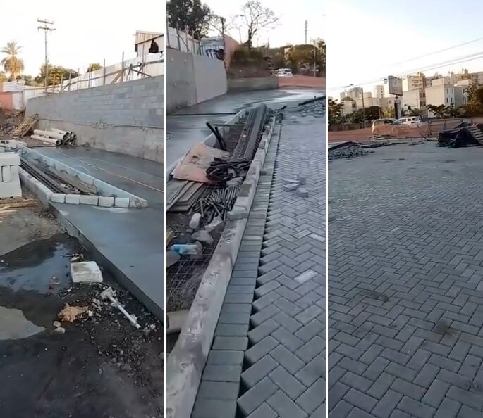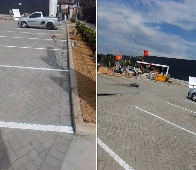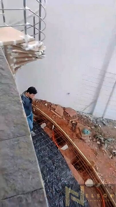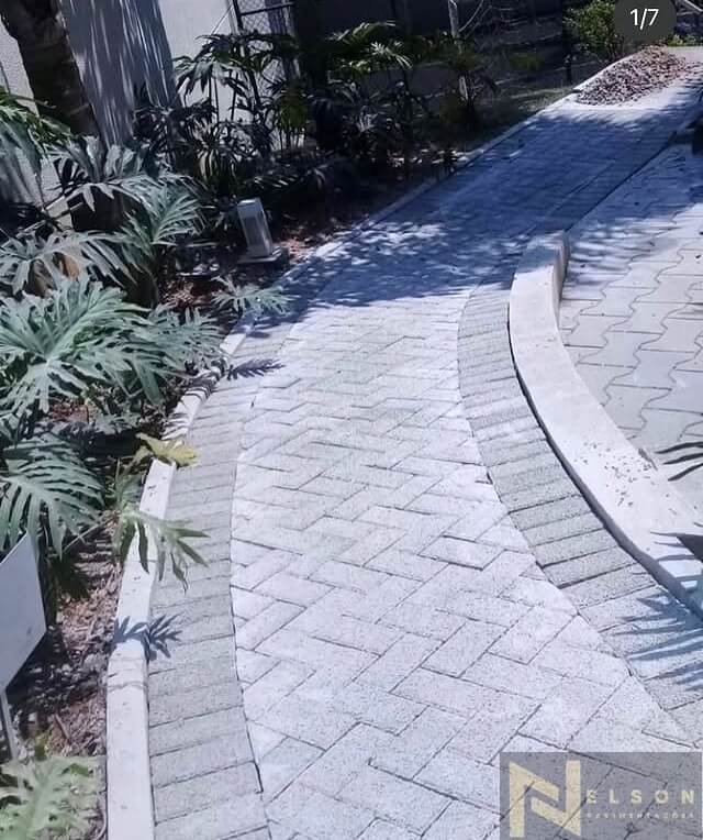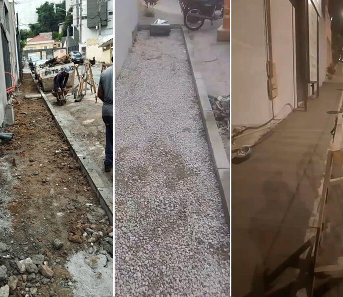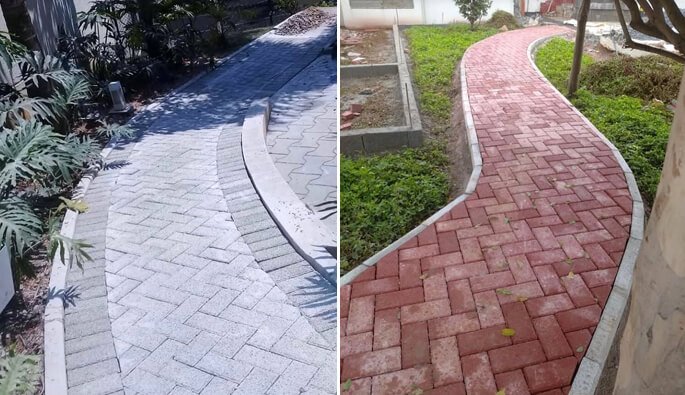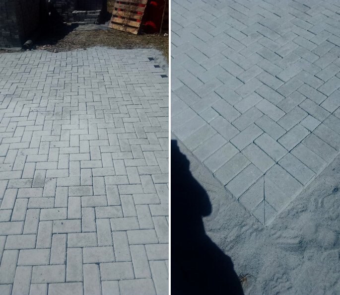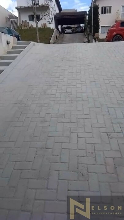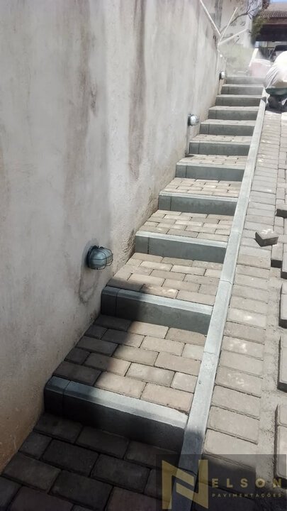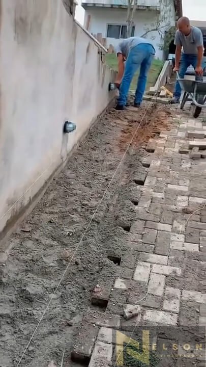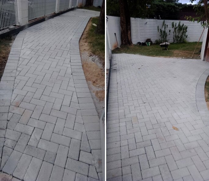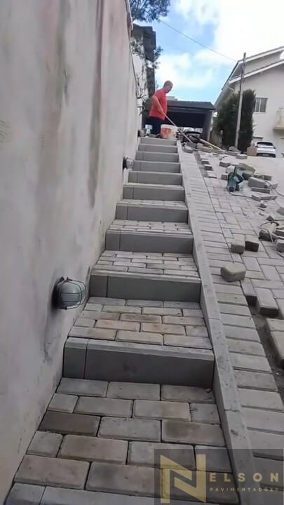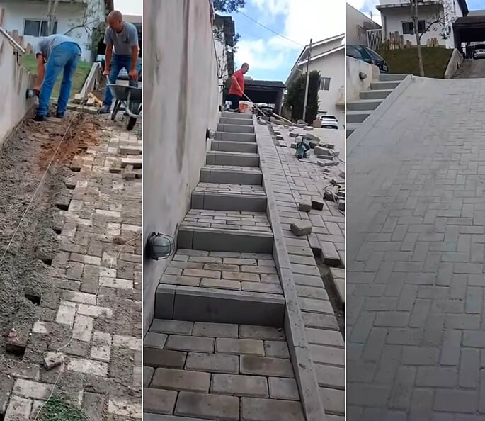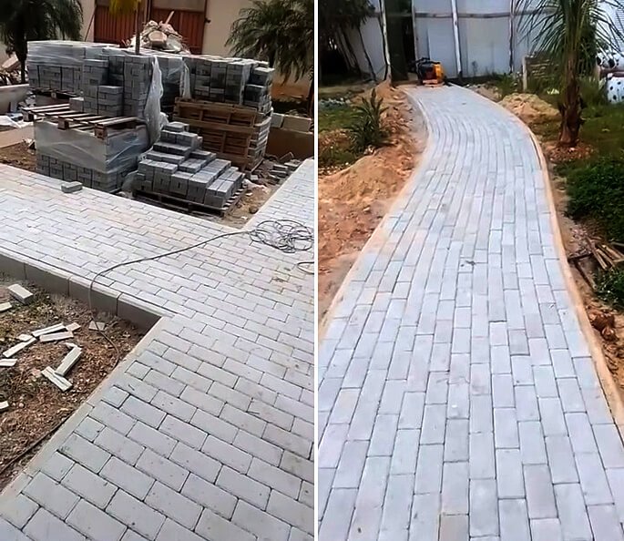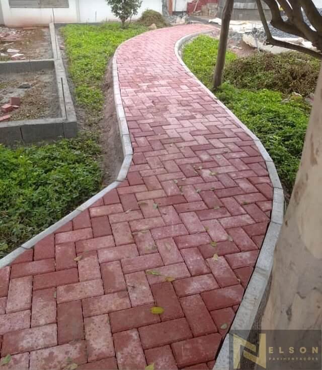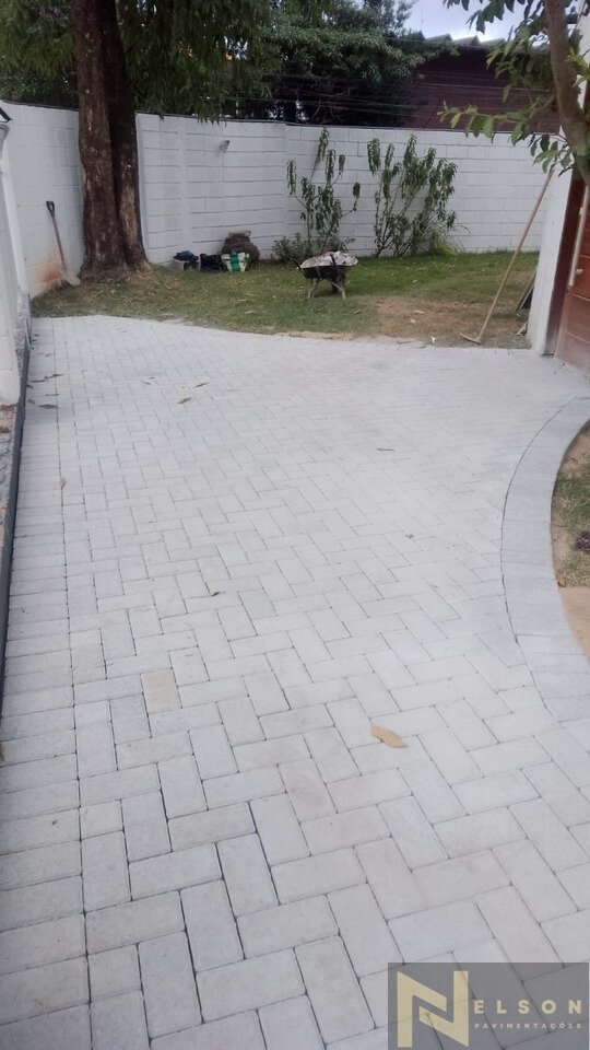 Nivelamento, assentamento do piso retangular, arremate, rejunte e compactação.